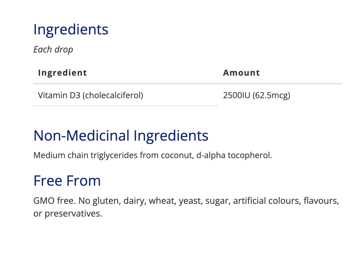 One drop contains your daily dose of 2500IU of vitamin D3 in a base of medium chain triglycerides for enhanced absorption. And, it fits right in your pocket, purse or backpack for on-the-go.