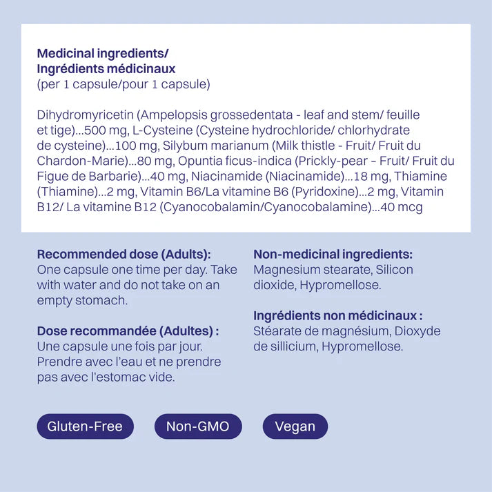 - Science-backed formulation with Dihydromyricetin (DHM), L-Cysteine, Milk Thistle, Prickly Pear, and Vitamin B Complex