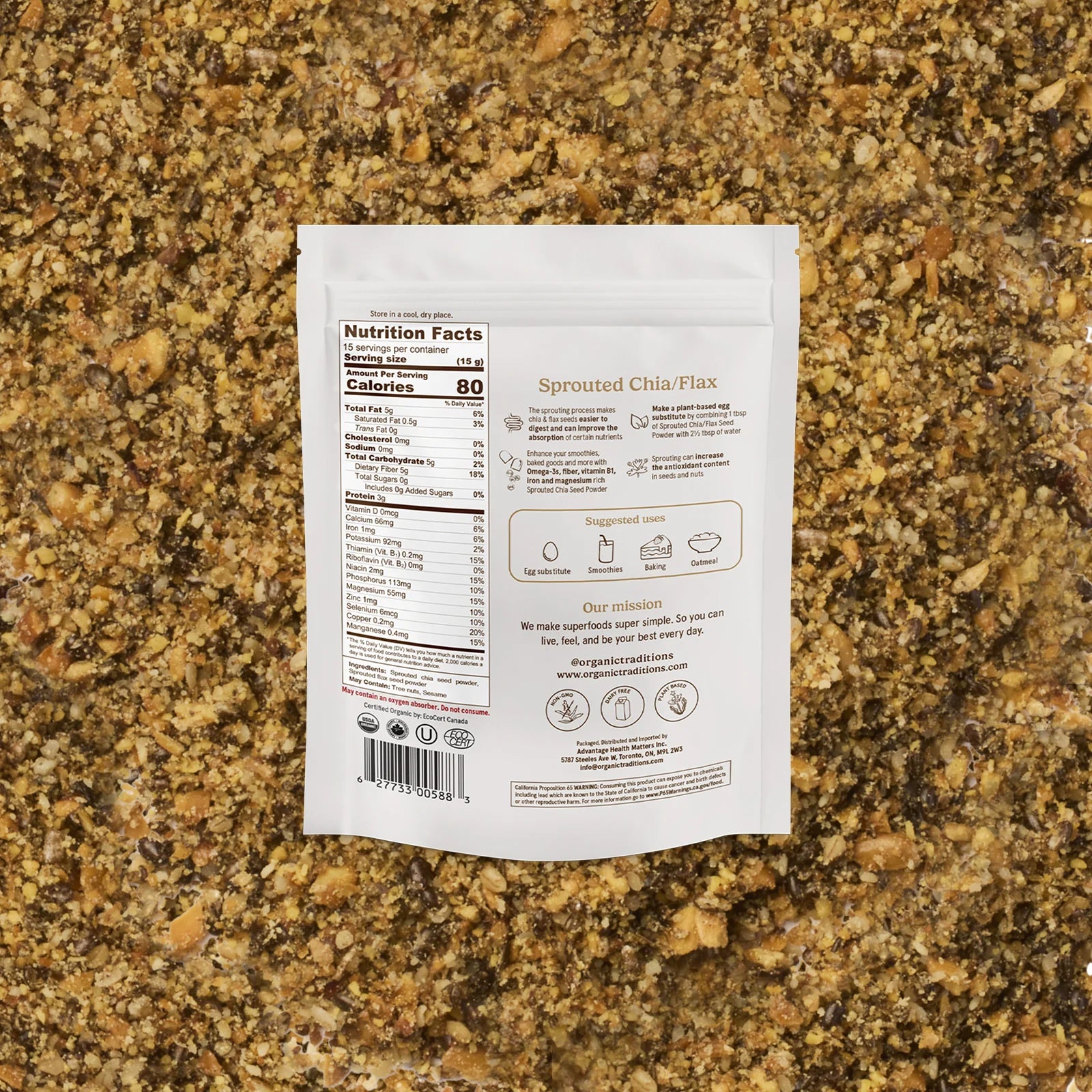 A nutrient-dense blend of organic sprouted chia and organic flax seeds to support heart health, brain function, and better digestion.