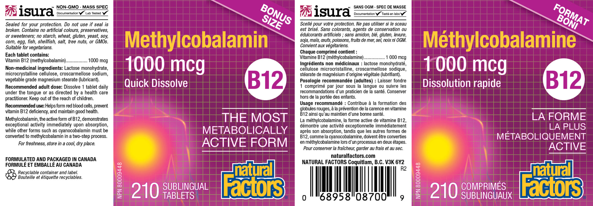 Natural Factors Methylcobalamin B12 provides vitamin B12 in its most bioactive form. This one-per-day sublingual formula supports the normal function of the immune system, energy metabolism, red blood cell formation, and helps maintain good health. Methylcobalamin is readily absorbed and demonstrates exceptional activity immediately upon absorption, unlike cyanocobalamin.